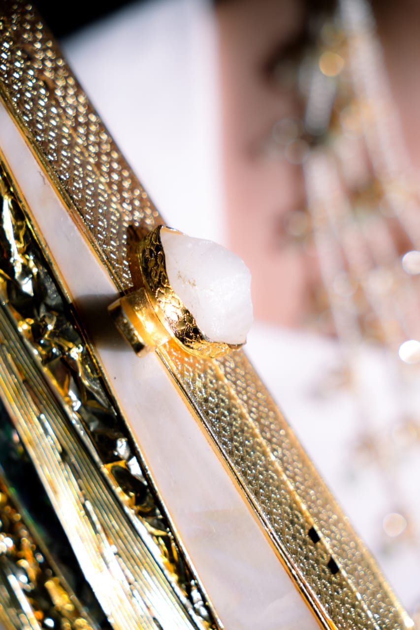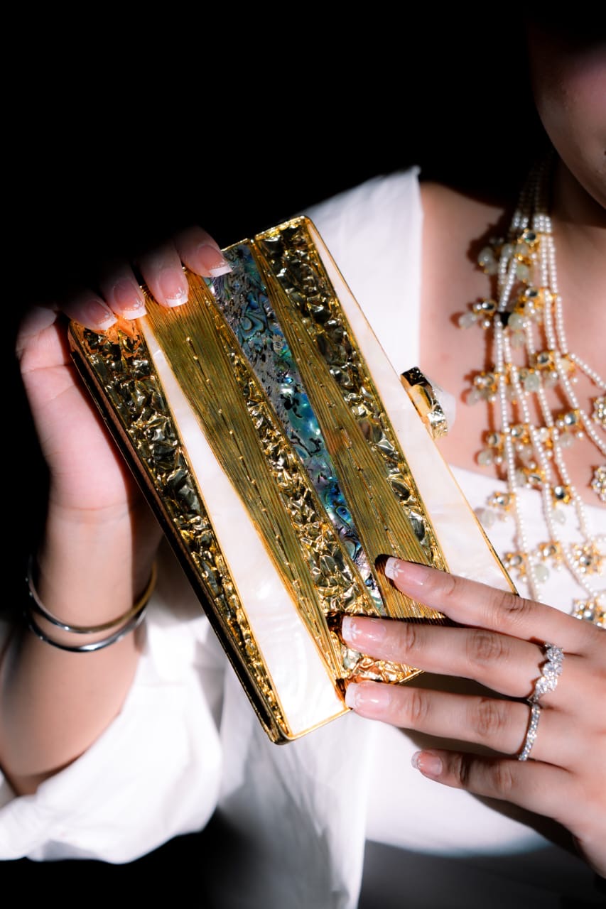 Effortlessly combine style and sustainability with our Checkered MOP clutch. Made with high-quality mother of pearl and pure brass, this stylish accessory features a silk lining for a luxurious touch. Perfect for any occasion, our clutch is a statement piece that showcases your commitment to both fashion and the environment.