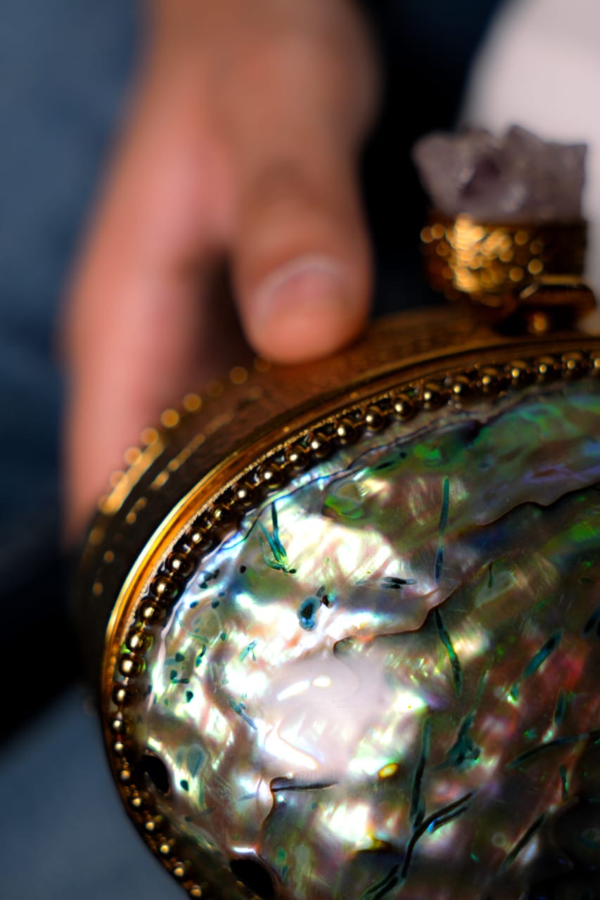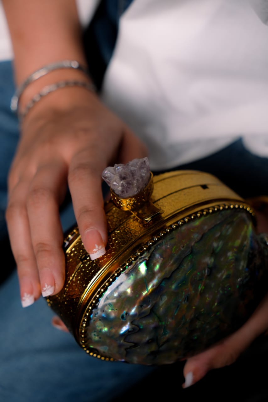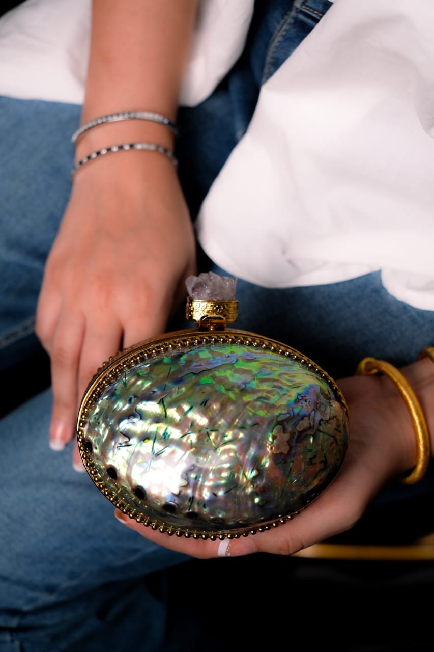 This Mini Mother of Pearl clutch is the perfect accessory for any occasion. Made with exquisite mother of pearl, it exudes elegance and sophistication. Its compact size makes it easy to carry, while its beautiful design adds a touch of luxury to any outfit. Guaranteed to make a statement wherever you go.