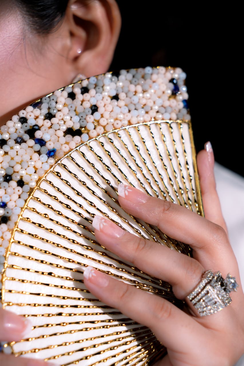 This Shellac MOP features a mother of pearl clutch for an elevated and elegant look. The smooth and iridescent finish will add a touch of sophistication to any outfit. Expertly crafted from high-quality materials, this clutch is durable and timeless.